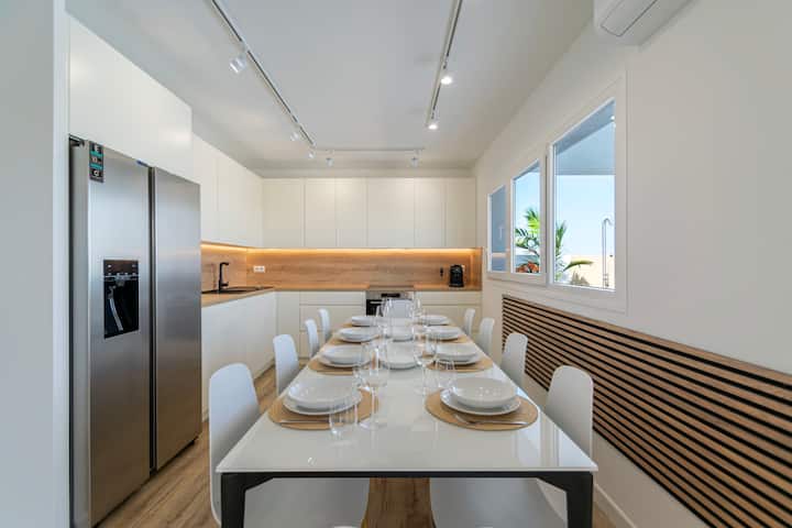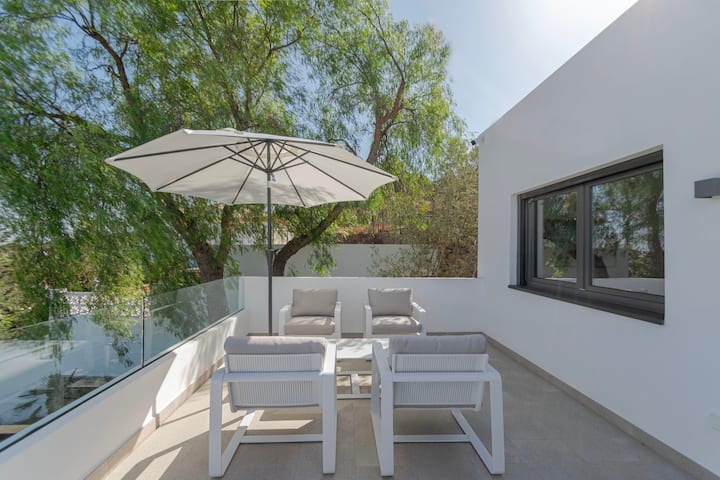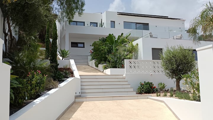 This is an Ibiza-Style villa built to the highest European standards – at the very Costa Del Sol just 3.5km (8 min by car) from the beach and the bars in Torremolinos – situated in a quite residential area – yet part of the city of Málaga and just some 20 minutes by car to the vibrant city center.